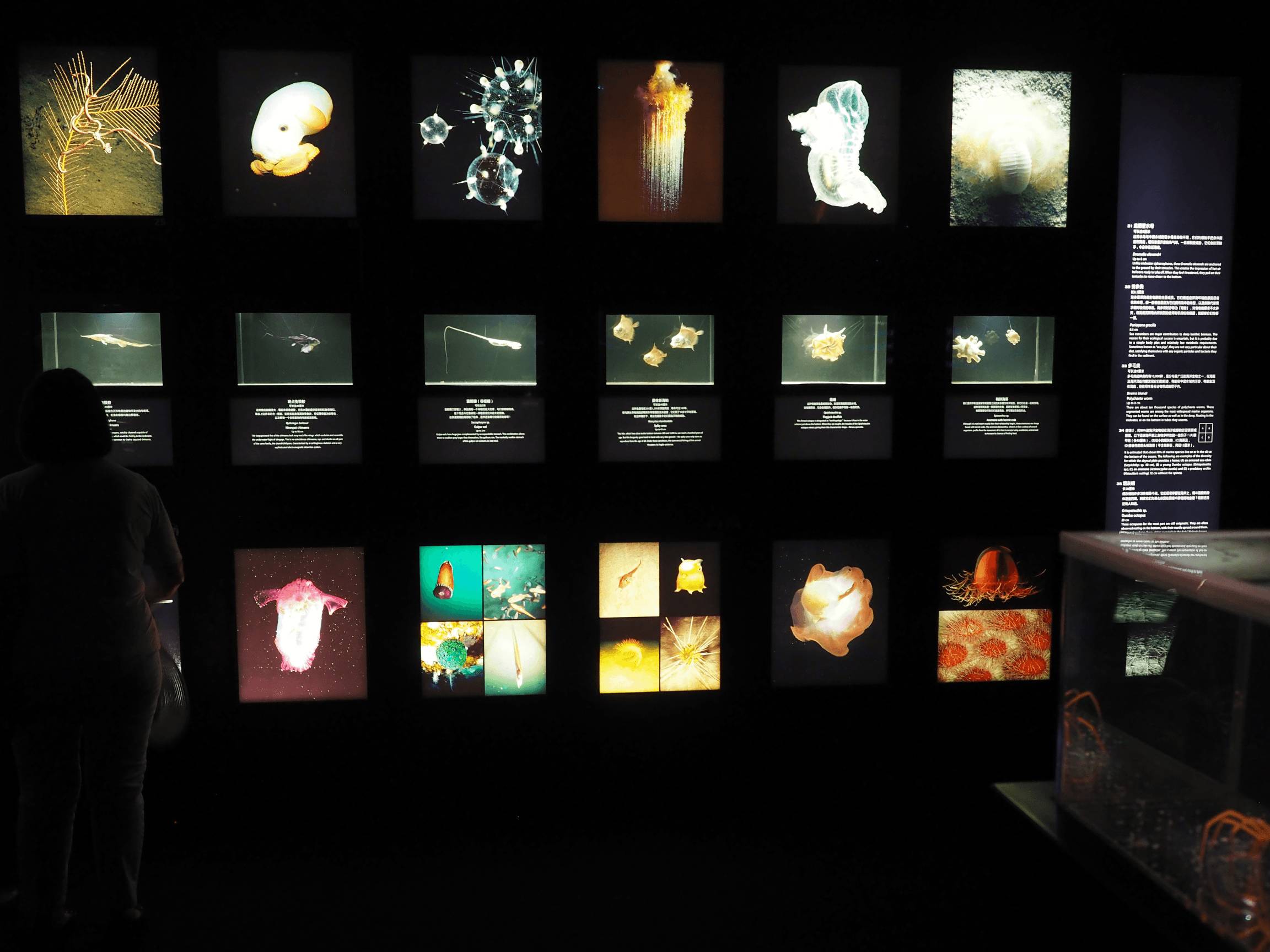 anglerfishWe visited the Artscience Museum to see the exhibition ‘The Deep’. This is a collection of extremely rare specimen of deep sea creatures, accompanied by amazing images and films. There was no light apart from the colourful images and the dimly-lit animals in their glass boxes in order to make the visitors experience the blackness of the deep oceans.